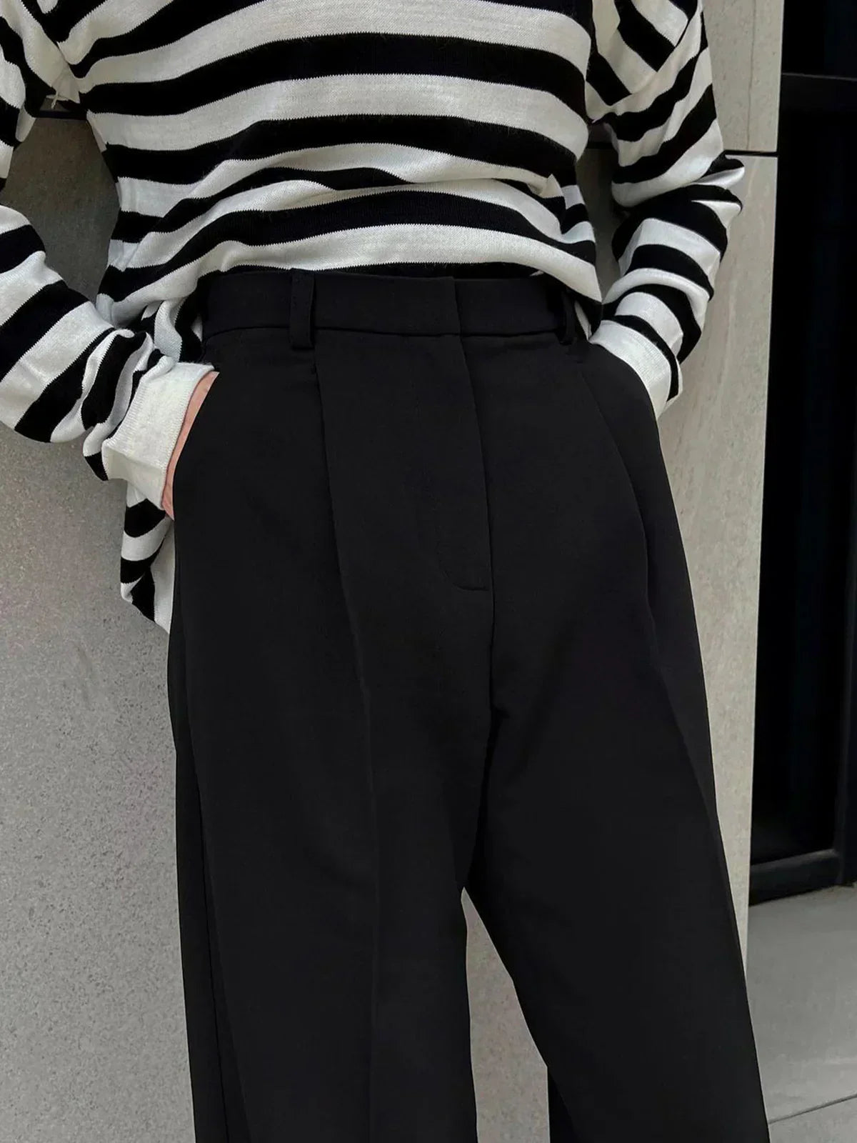 Design: Wide-leg high-waisted pants with an elegant cut and a fluid silhouette. The minimalist design makes them a versatile piece in your wardrobe.