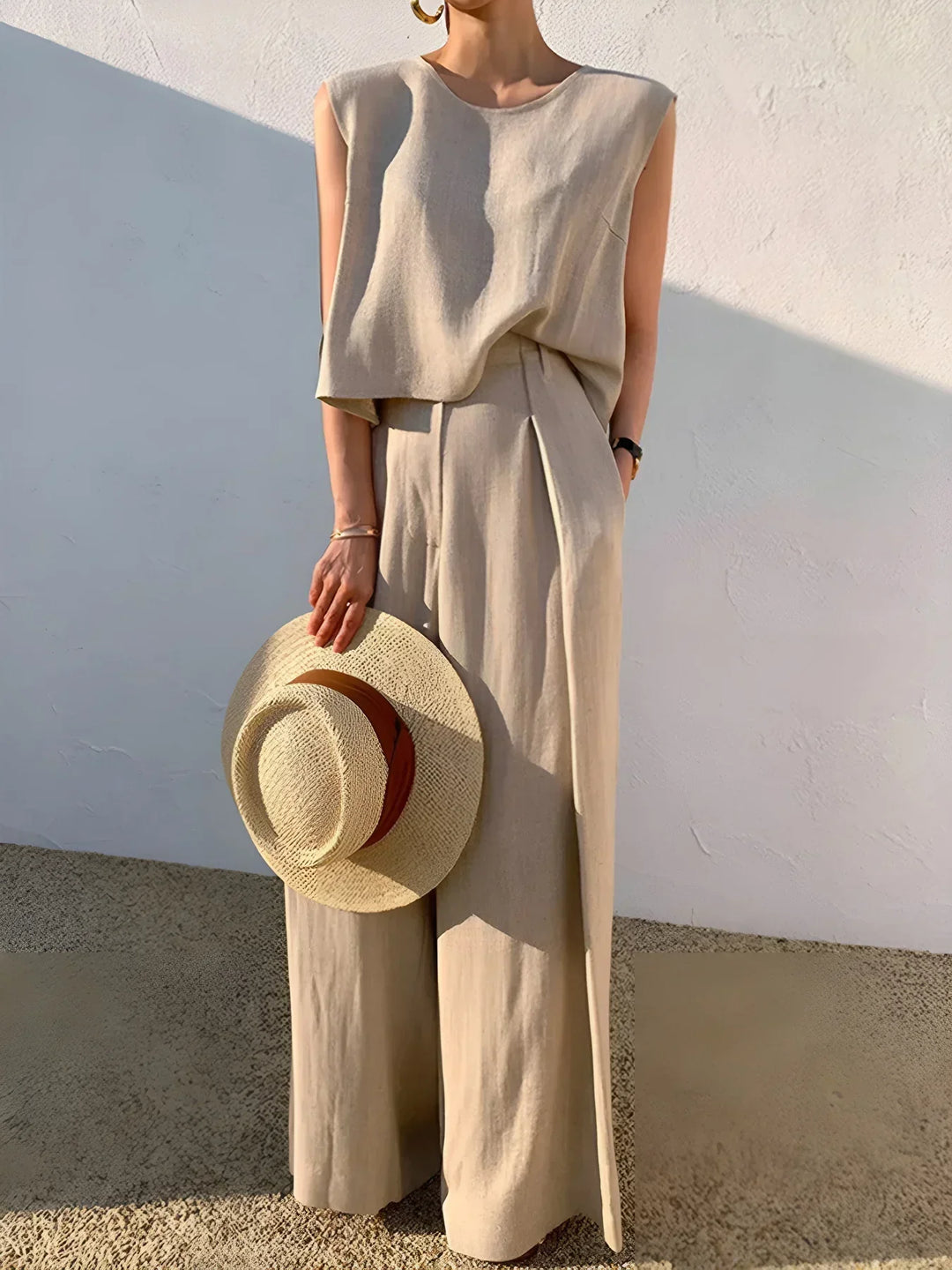 Ora - Women's Two-Piece Set: Sleeveless Top and Printed Trousers