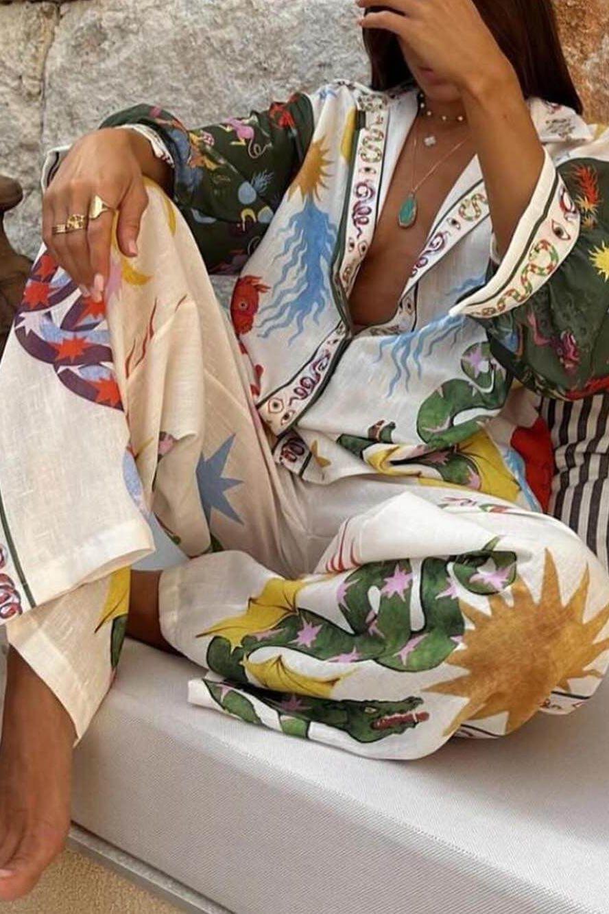 The Isabella Luxe Two-Piece Set redefines contemporary style with a perfect blend of relaxed charm and elegant refinement. Featuring a distinctive button-up shirt with a fluid, relaxed cut, and high-waisted elastic pants, this set offers comfort throughout the day while maintaining a chic and sophisticated look. Whether you're heading to brunch, a weekend getaway, or simply enhancing your everyday wardrobe, this stylish duo makes dressing effortless.